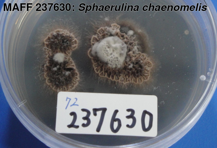 | 学名 | Sphaerulina chaenomelis (Y. Suto) Videira, U. Braun, H.D. Shin et Crous = Cercosporella chaenomelis Y. Suto |