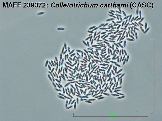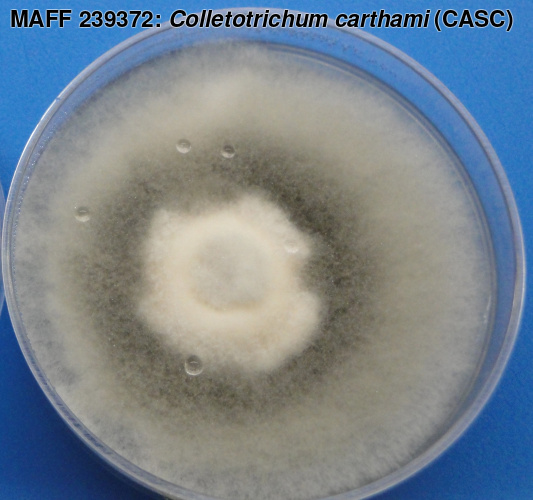 | 学名 | Colletotrichum carthami (Fukui) S. Uematsu, Kageyama, Moriwaki et Toy. Sato (CASC) = Colletotrichum chrysanthemi (Hori) Sawada (CASC) |