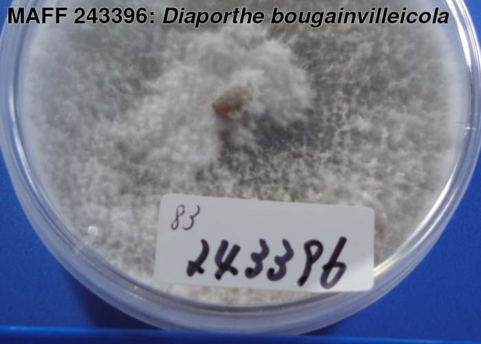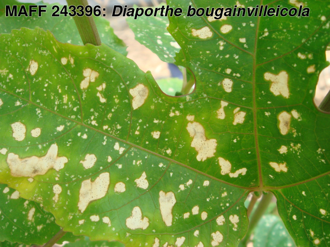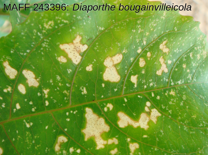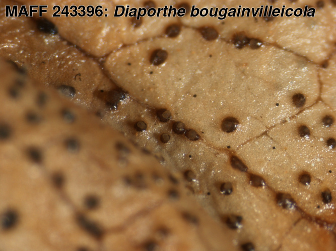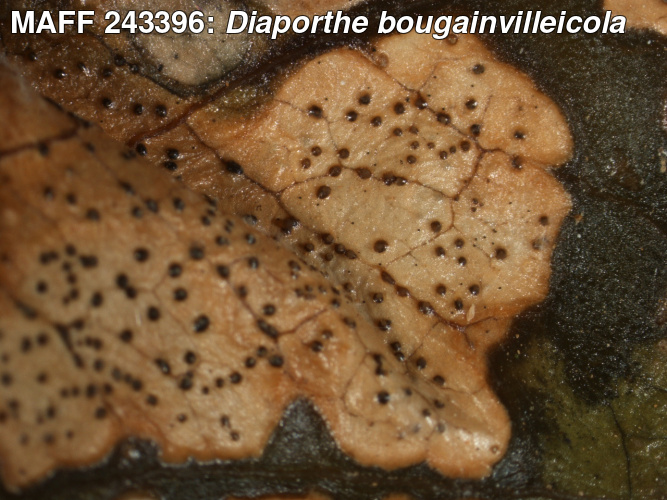 | 学名 | Diaporthe bougainvilleicola (M.M. Xiang, Z.D. Jiang et P.K. Chi) Rossman et Udayanga = Phomopsis bougainvilleicola M.M. Xiang, Z.D. Jiang et P.K. Chi |