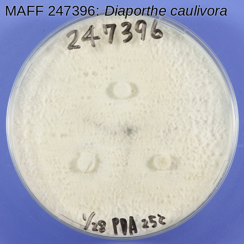 | 学名 | Diaporthe caulivora (Athow et Caldwell) J.M. Santos, Vrandecic et A.J.L. Phillips = Diaporthe phaseolorum (Cooke et Ellis) Saccardo var. caulivora Athow et Caldwell |