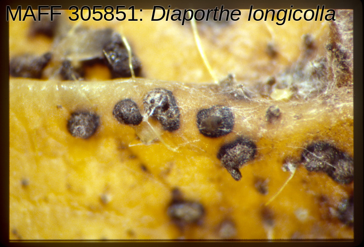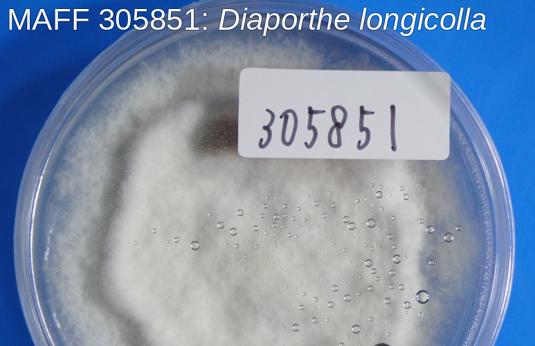 | 学名 | Diaporthe longicolla (Hobbs) J.M. Santos, Vrandecix et A.J.L. Phillips |