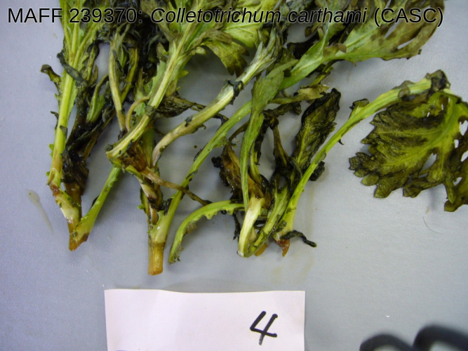 Scientific nameColletotrichum carthami (Fukui) S. Uematsu, Kageyama, Moriwaki et Toy. Sato (CASC) = Colletotrichum chrysanthemi (Hori) Sawada (CASC)