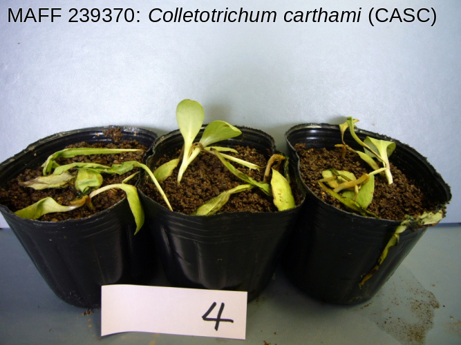• Uematsu, S., Kageyama, K., Moriwaki, J. and Sato, T. (2012). Colletotrichum carthami comb. nov., an anthracnose pathogen of safflower, garland chrysanthemum and pot marigold, revived by molecular phylogeny with authentic herbarium specimens. Journal of General Plant Pathology 78(5): 316-330. [10.1007/s10327-012-0397-3]