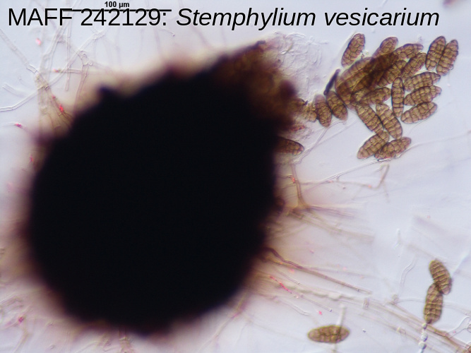 | Scientific name | Stemphylium vesicarium (Wallroth) E.G. Simmons = Pleospora herbarum (Persoon) Rabenhorst |