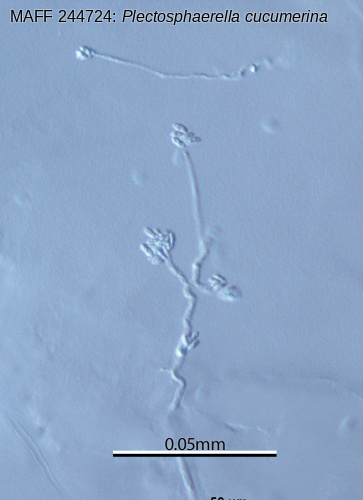 | Scientific name | Plectosphaerella cucumerina (Lindfors) W. Gams = Plectosporium tabacinum (J.F.H. Beyma) M.E. Palm, W. Gams et Nirenberg |