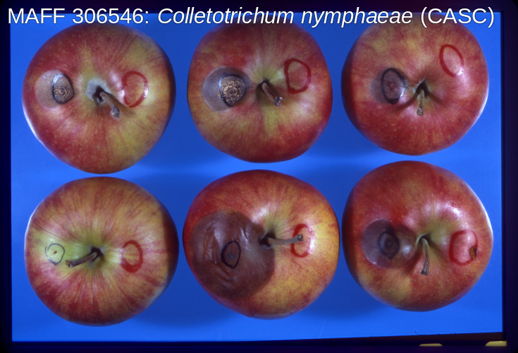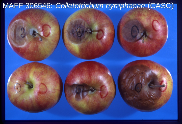 - Sato, T., Uematsu, S., Iijima, A. and Koganezawa, H. (1998). Occurrence of apple bitter rot by grayish colony form of Colletotrichum acutatum in Japan and pathogenicity to apple fruits of C. acutatum and Glomerella cingulata isolated from other plants. Japanese Journal of Mycology (Nippon Kingakukai kaiho) 39: 35-44. [mycology-jp.org]