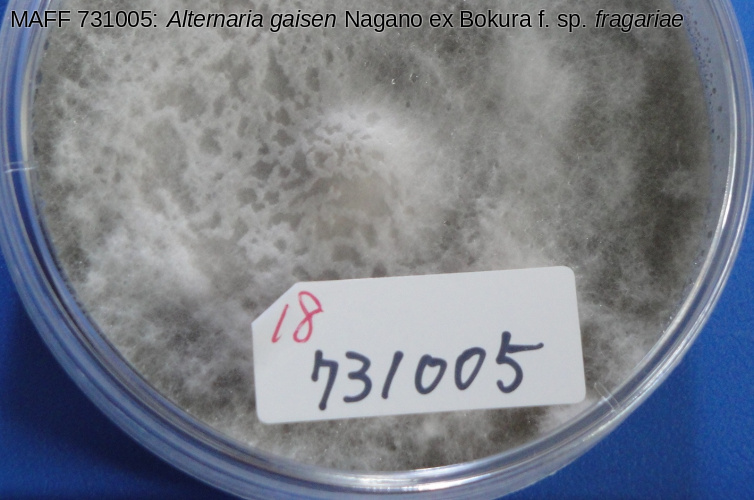 | Scientific name | Alternaria gaisen Nagano ex Bokura f. sp. fragariae Jun. Nisikawa et C. Nakashima |