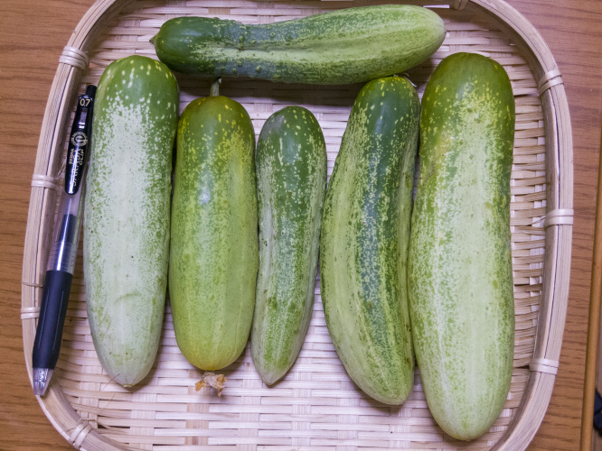 | 品種特性 | 皮の緑色が薄く、旨みがあり、青臭さや雑味がない。黒イボ、半白で長さ15cm程度の果実をつけるキュウリである。黒イボでありながら、雌花形成に対する日長反応性が弱いことから、華南系と華北系キュウリの雑種だと考えられる。 |