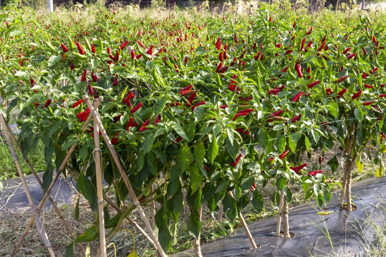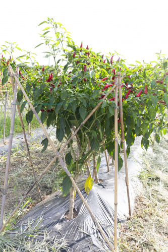 約400年以上前、豊臣秀吉の時代に塩飽水軍が朝鮮の役の功績によって秀吉からこのトウガラシを拝領したと言い伝えられている。平賀源内も『蕃椒譜』に朝鮮の役で種子を持ち帰ったこと、長さ五寸近くになる「本高」なる品種を記載しているという(香川資料4)。 昭和初期にはピクルスの材料として海外へ輸出され、高い評価を得ていたという。三豊市詫間町で昭和57(1982)年まで営業していたトウガラシ問屋によると、最盛期の買い入れ額は当時の貨幣で8億円を超えたという。しかし昭和中期以降は、安い輸入品に押され生産量が減少し、姿を消した(香川資料1と4)。 2005年ころ三豊市詫間町で香川本鷹を門外不出で栽培していた農家から、香川県西讃農業改良普及センターの糸川桂市氏が許しを得て種子を分譲してもらい、2006(平成18)年2月に県・市・JA・加工品会社とともに「香川本鷹復活プロジェクト」が始まった。同年、飽海諸島の丸亀市手島町と広島町の8戸8aで復活栽培が始まった。平成26(2014)年には三豊市内を中心に75aを15戸の生産者が栽培し、7.5tを生産した(香川資料4)。 |